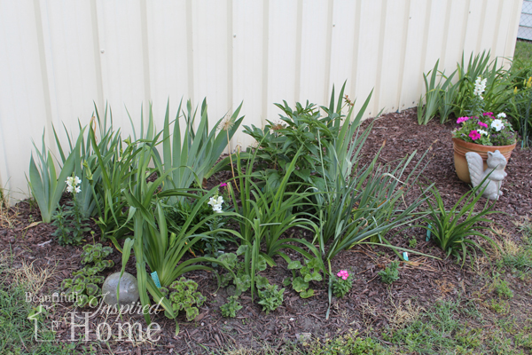 I have two flower beds I’m working on around the yard. The first gets a lot of sun in the back yard and the other is a shade garden in front of the house. The shade garden needs a lot of work so I’ll show you what we’re doing there another day.