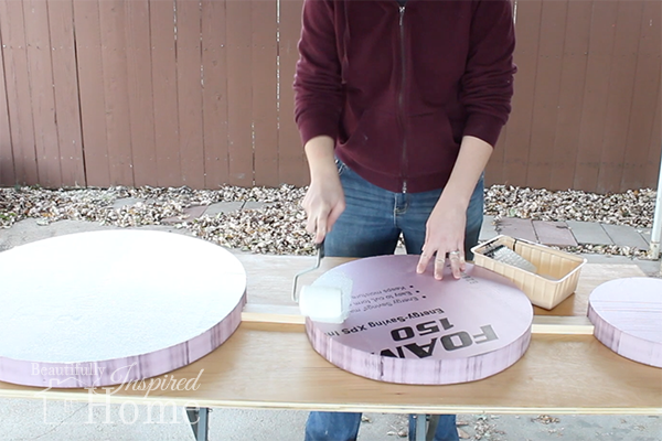 Apply two coats of latex or acrylic paint to all sides of the foam and wood. DO NOT use spray paint directly on the foam as the solvents in the paint will eat the foam.