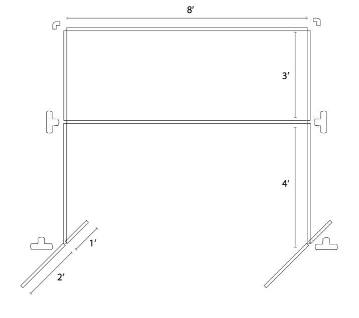 The 2’ and 1’ lengths are interchangeable as feet for the backdrop. If you are in a tight location, the 2’ and 1’ lengths can be combine to make a shorter foot as illustrated to the right. If more stability is needed use all 4, 2’ lengths. There will be two extra pieces of pipe. This is to give options.