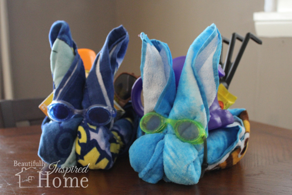 Easter is just around the corner! I wanted to share with you this adorable Towel Easter Bunny Basket. It is a simple project and a great way to give a useful gift. I have two active nephews who will love a jump start to summer!